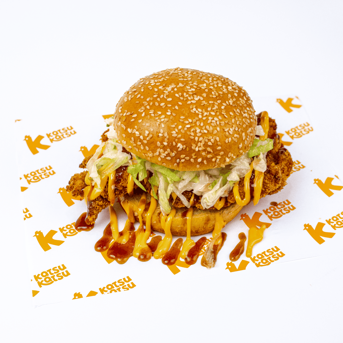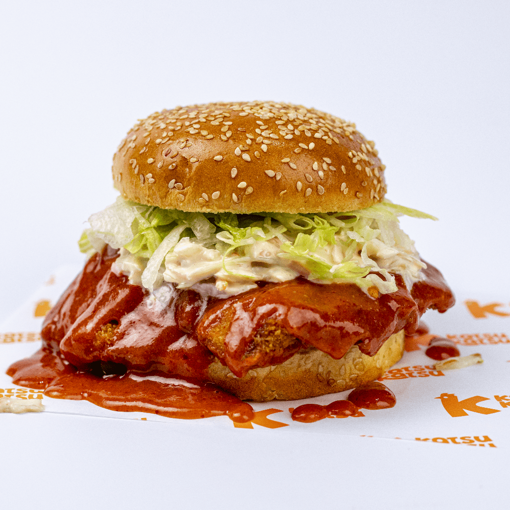 Crispy chicken katsu thigh, topped with lettuce, coleslaw, spicy mayo & tonkatsu sauce.