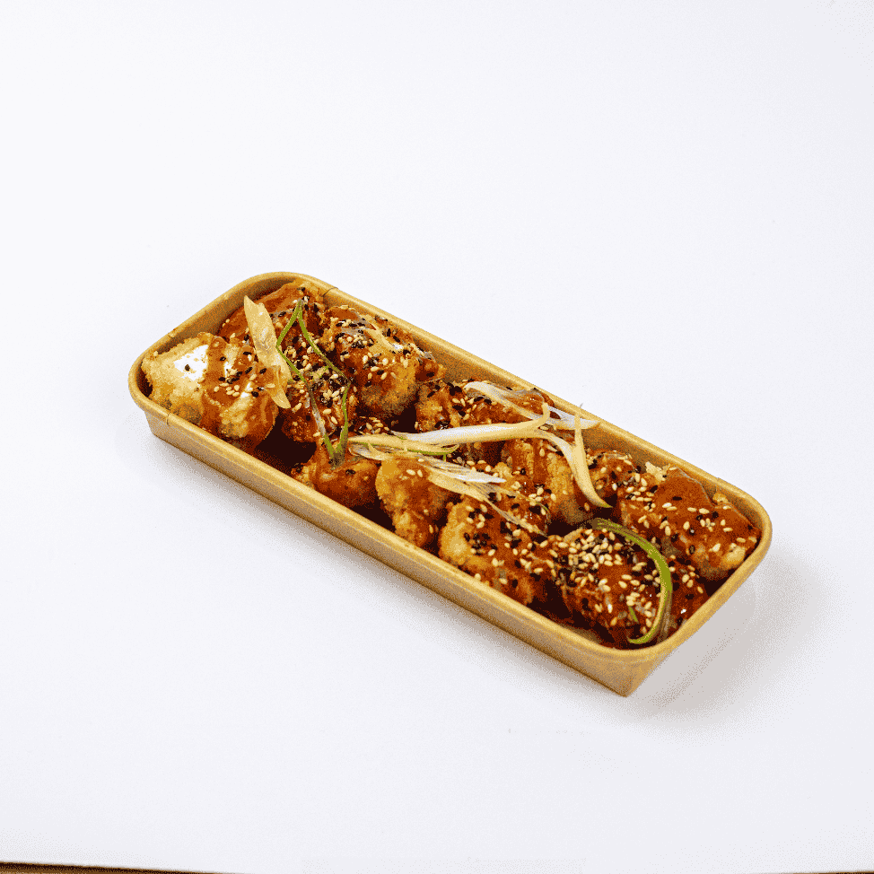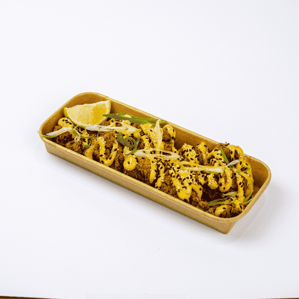 Deep-fried chicken with spicy mayo, red chilli, spring onion & sesame.